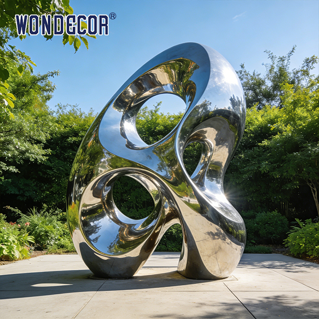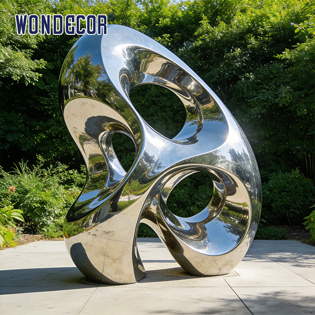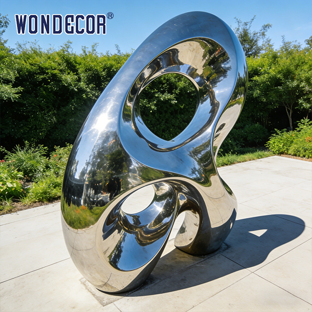 يجسد هذا التمثال الكبير الحجم المصنوع من الفولاذ المقاوم للصدأ "التموج الدائري" روح النحت المعدني التجريدي الغربي المعاصر - المتجذر في تقاليد التجريد العضوي لبرانكوسي والتمثال التذكاري المجوف لهنري مور، والذي أعيد تصوره ليناسب الأماكن العامة في القرن الحادي والعشرين. تم تصنيعه من الفولاذ المقاوم للصدأ 304/316 المصقول بدرجة عالية، ويعمل سطحه المصقول كالمرآة بمثابة لوحة قماشية حية، حيث يلتقط السماء وأفق المدينة والمناظر الطبيعية المحيطة في حوار مستمر بين الضوء والانعكاس، مرددًا صدى الطاقة الحركية للسادة المبدعين مثل ريتشارد سيرا. تخلق الفراغات الدائرية المتشابكة إحساسًا بالمساحة السلبية التي تدعو المشاهد إلى النظر من خلالها، مما يثير انفتاحًا تأمليًا مع التأكيد على حضور هندسي جريء. تم تصميمه من أجل التحمل، فهو يوفر مقاومة استثنائية للتآكل، وثبات للأشعة فوق البنفسجية، ومقاوم للطقس، مما يضمن بقاء لمعانه المضيء لعقود من الزمن في الأماكن الخارجية بأقل قدر من العناية. إنه أكثر من مجرد قطعة زخرفية، فهو عمل فني عام خاص بالموقع يستكشف موضوعات الترابط والسيولة والانسجام بين الهياكل التي من صنع الإنسان والعالم الطبيعي، مما يجعله بيانًا نهائيًا للحدائق الحضرية وساحات الواجهة البحرية والمجموعات المؤسسية.